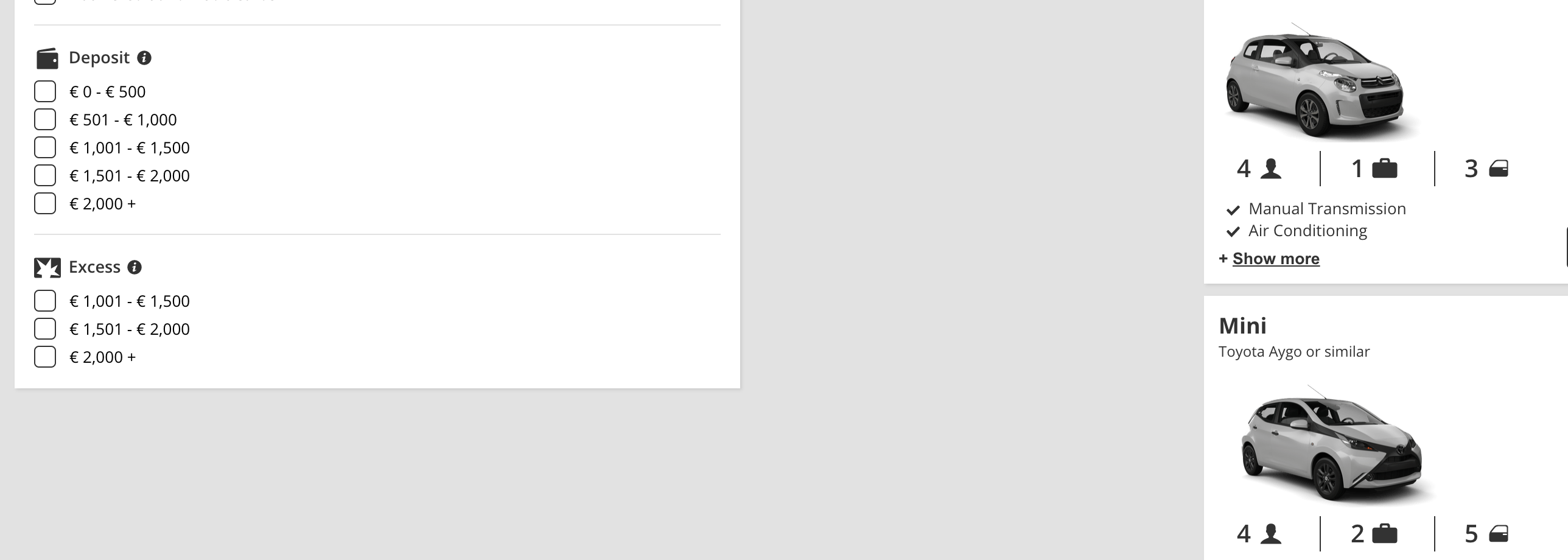 At STEP2 of our 3 step online booking process, to the right of the car photo of your choice, is a link entitled "IMPORTANT INFORMATION". Click on this link